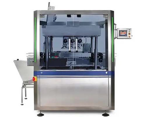 The Inline bottle cap applicator offers high-speed inline cap application. You can select from various automatic cap feeding options like vibratory cap feeder, waterfall elevator, or mechanical orientor.